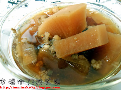 過年前,由於深怕過年期間市場沒營業,加上蔬菜價格極低,忍不住買了許多菜回家待命;誰知道,年後竟發現還有一條白蘿蔔孤零零地趟在蔬果箱,壓根兒就沒碰過。左思右想,做個白蘿蔔燉肉應該不錯,偏偏手邊又沒有牛肉,索性拿出冷凍庫裡餘下的豬絞肉,硬是做成白蘿蔔「滷肉」──反正,燉肉同滷肉,不是差不多嗎?何必太認真呢?(人人心裡都住著一位差不多先生啊!)